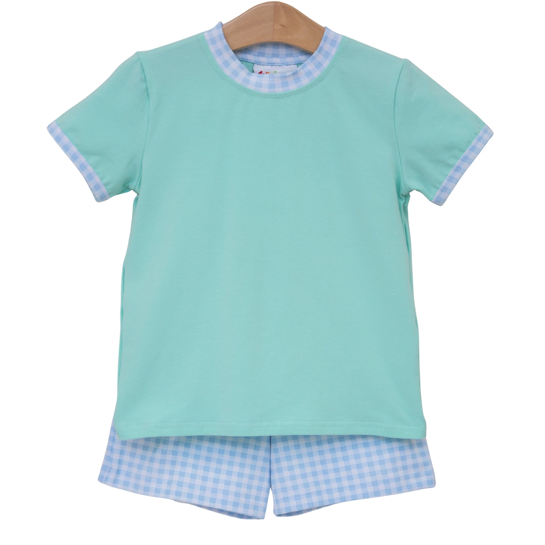 Avery Short Set- Mint w/ Light Blue Gingham
