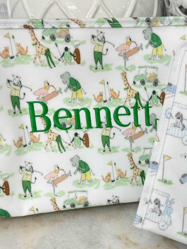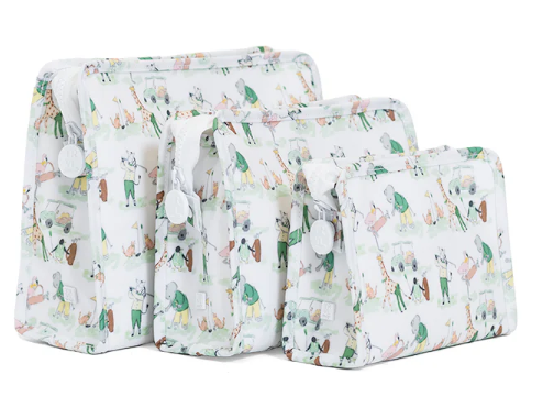 Our best-selling Roadies are our BFFs in the pouch world!  Available in 2 sizes, our Roadies are made in a cotton gingham with a thin Eco-friendly matte coating, an inside slip pocket and exterior snap open zip tabs for a wider opening and an easier access.