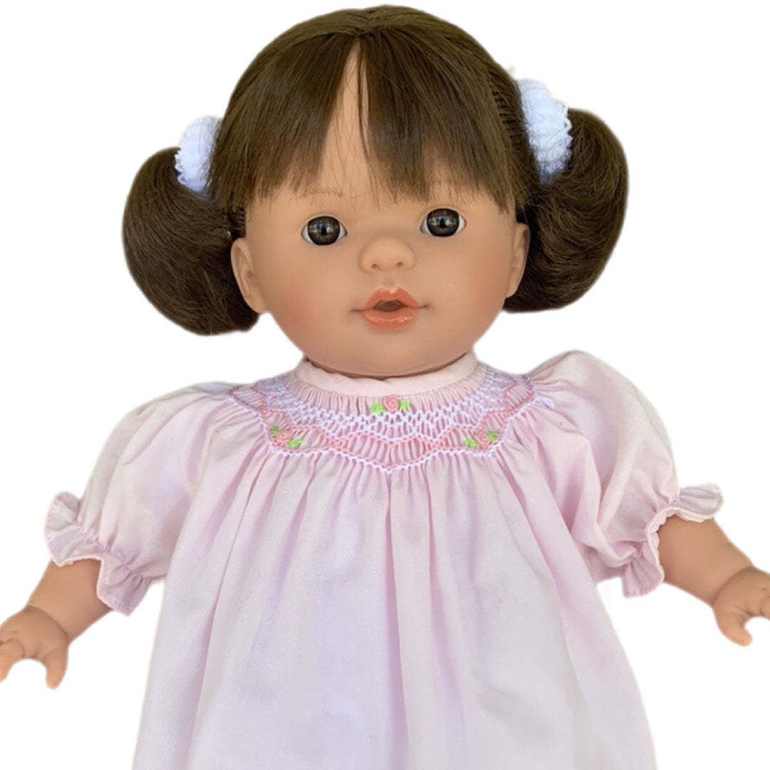 Rosalina White or Pink Dress 15" Emma Doll *BROWN EYES* (Doll, Dress, and Embroidery)