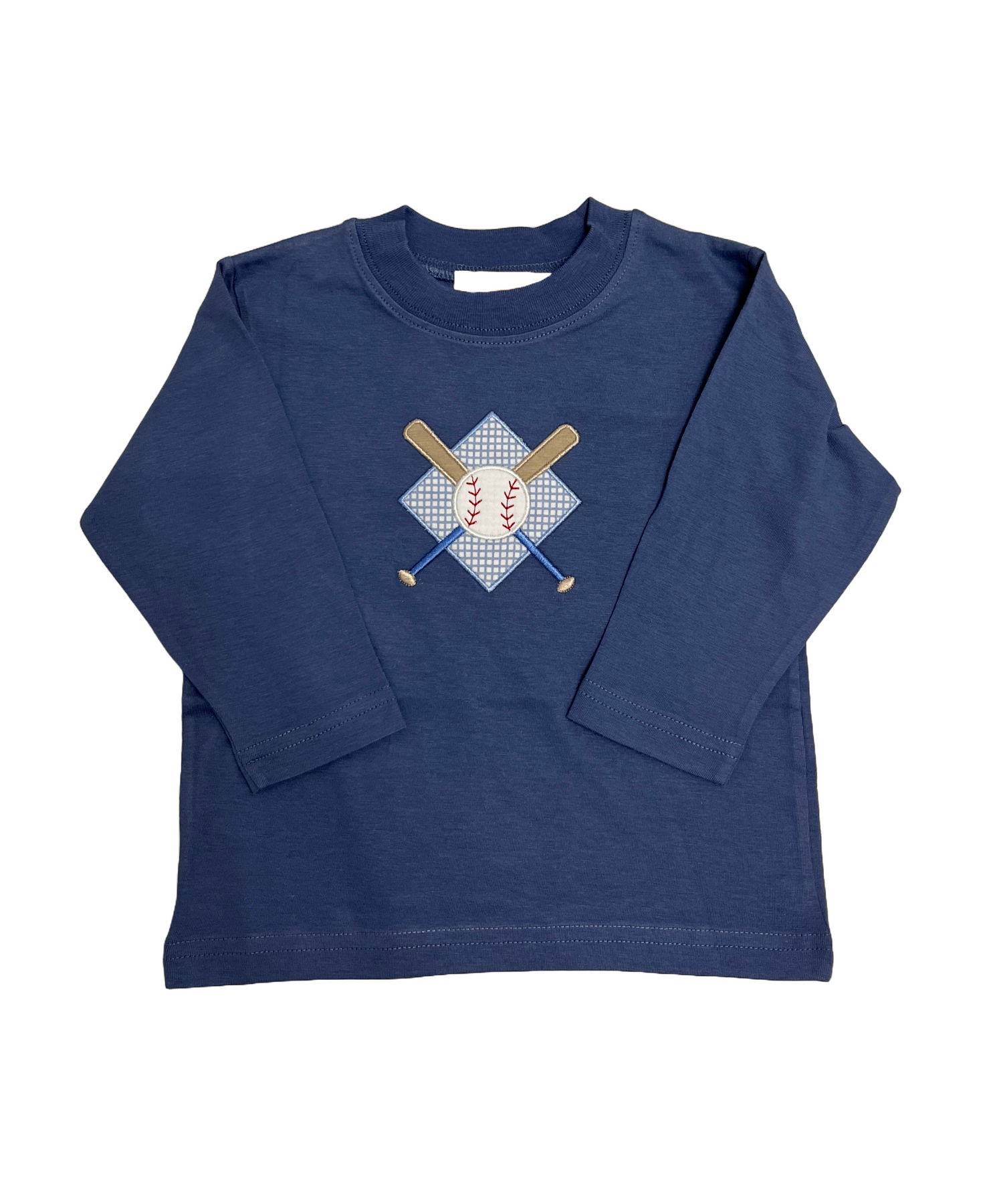 Luigi - Dark Blue - Long Sleeve Baseball Diamond with Bats Appliqué